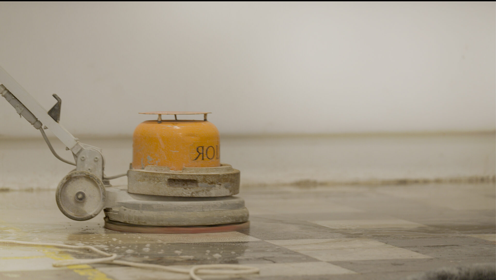- Schuren: we verwijderen de beschadigde toplaag tot alle krassen, vlekken, verkleuringen en oneffenheden verdwenen zijn. Om de voegen extra te reinigen, passen we een stripmethode toe (als dat nodig is).